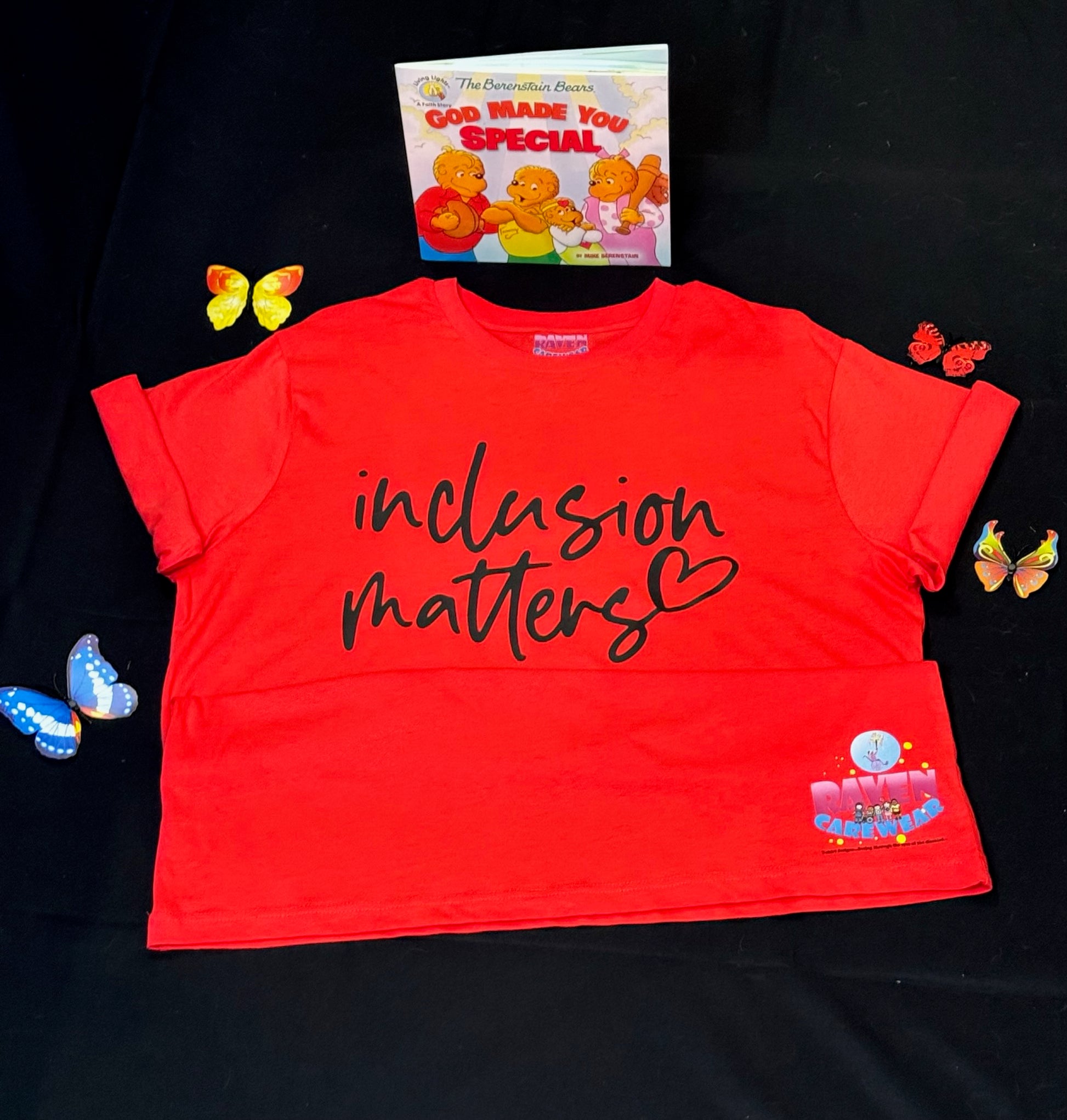 Make a bold statement for inclusivity with our "Inclusion Matters" T-shirt. This vibrant red shirt is designed for those who believe in creating spaces where everyone feels valued and accepted. Featuring the powerful message "Inclusion Matters" in a stylish black script with a heart, this shirt serves as a reminder that diversity and acceptance are at the heart of every strong community.